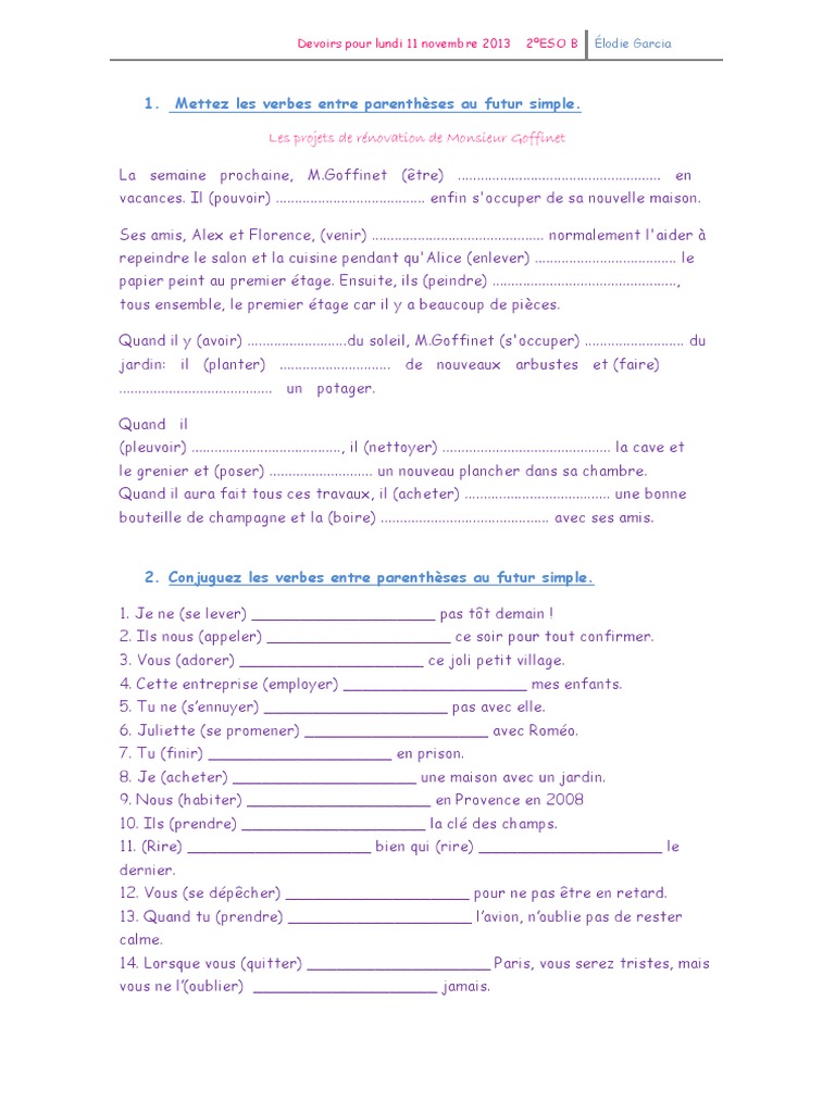 Exercice Futur Simple 2eso B Pdf