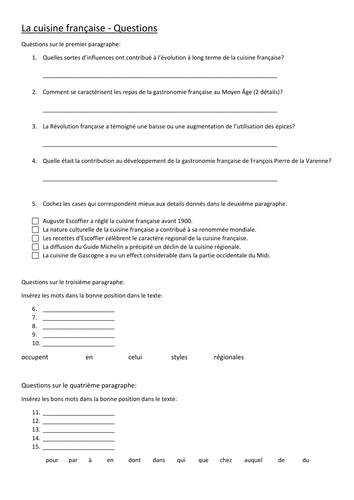 La Cuisine Francaise Teaching Resources